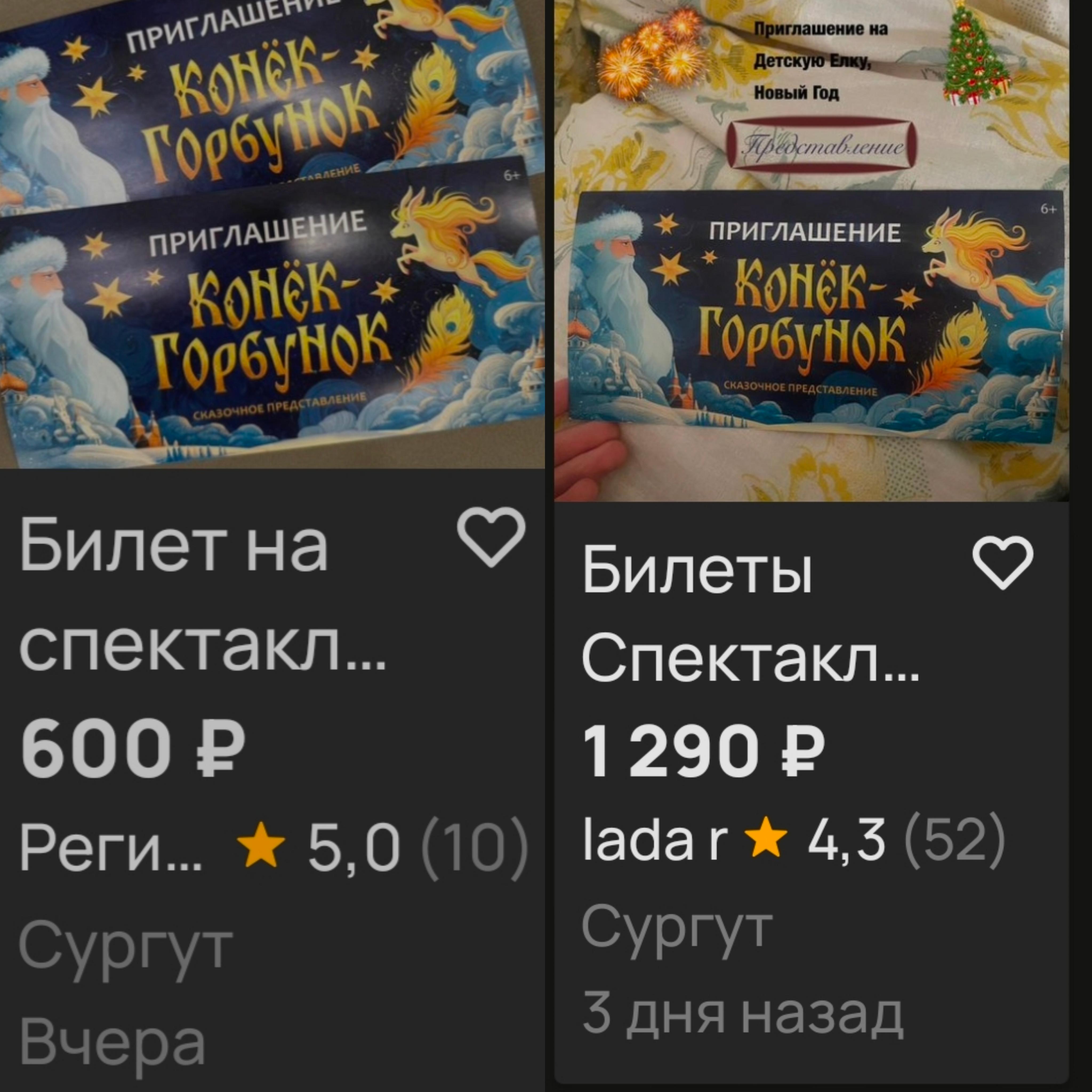 На площадке «Авито» появилось множество объявлений от сургутских нефтяников о продаже билетов на детский новогодний спектакль. Эти пригласительные они получили бесплатно по месту работы.
