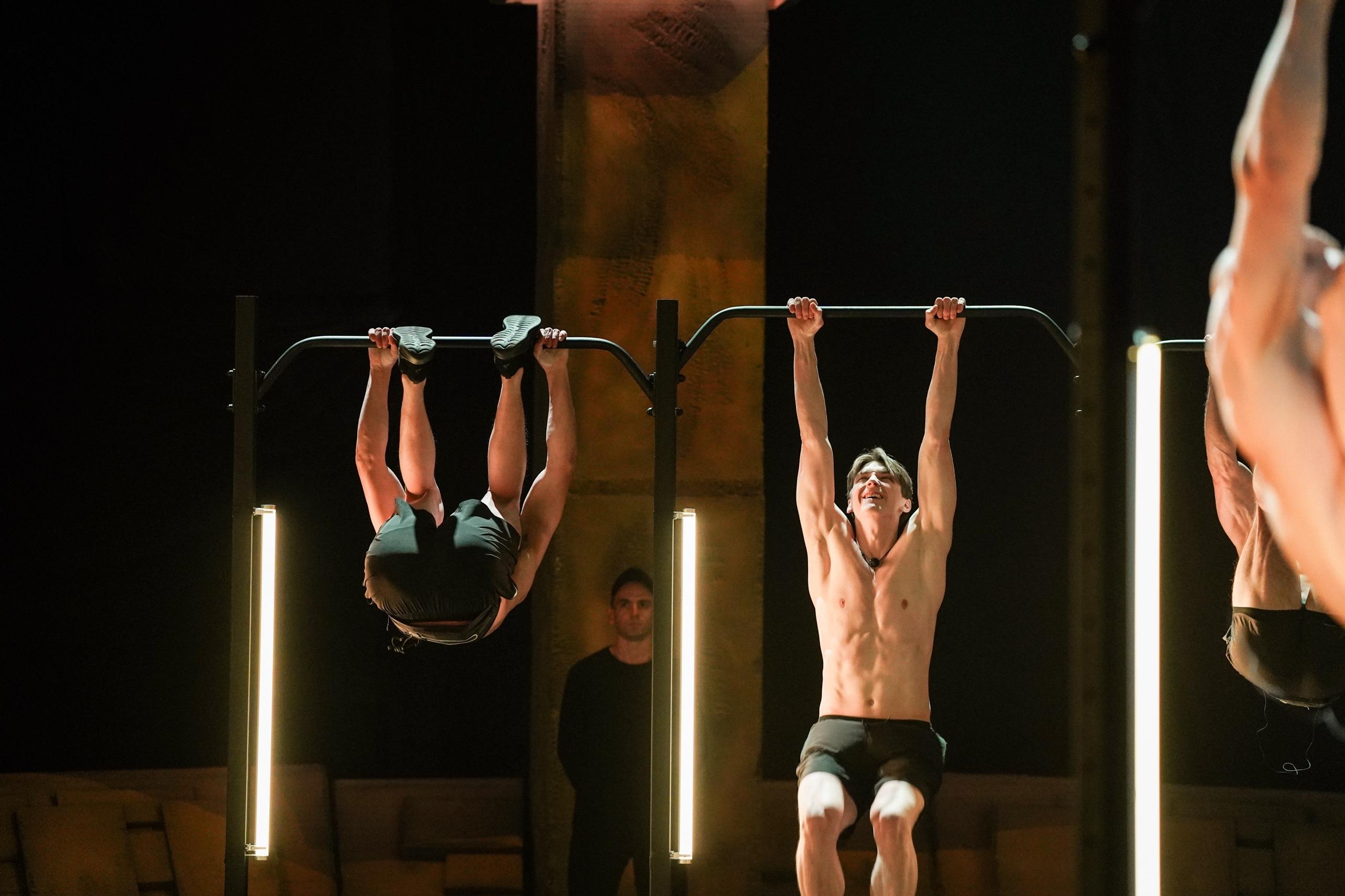 Испытание с подтягиванием ног к турнику: Храмцов выдержал его, в то время как семь других атлетов сошли с дистанции.