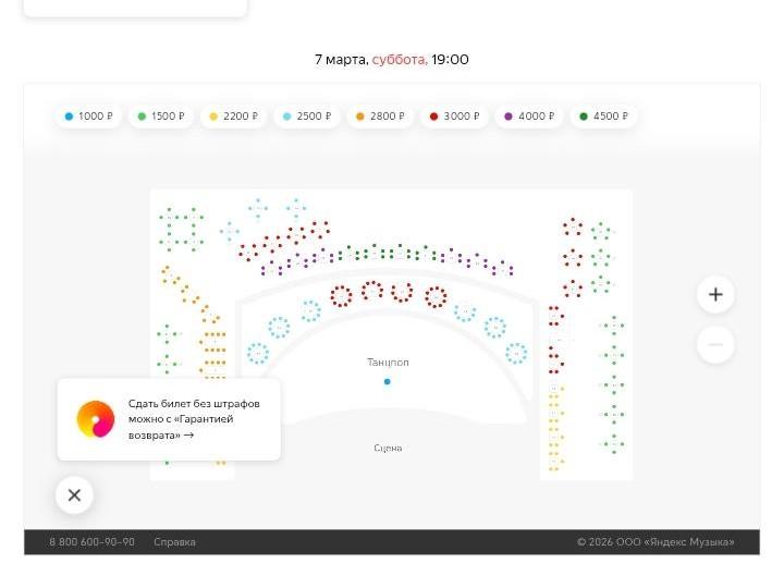 - места ближе к сцене — от 2200 до 4000 рублей;