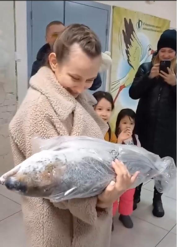 Муж подарил жене рыбу вместо цветов при выписке