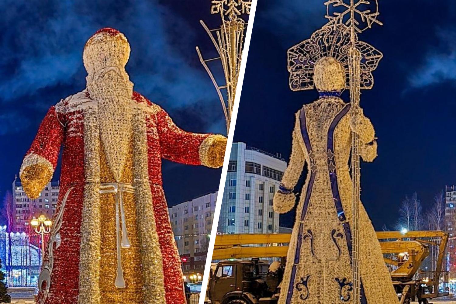 Жители Нижневартовска раскритиковали гигантские фигуры Деда Мороза и Снегурочки, у которых отсутствуют лица. Шестиметровые светящиеся конструкции появились на площади Нефтяников.
