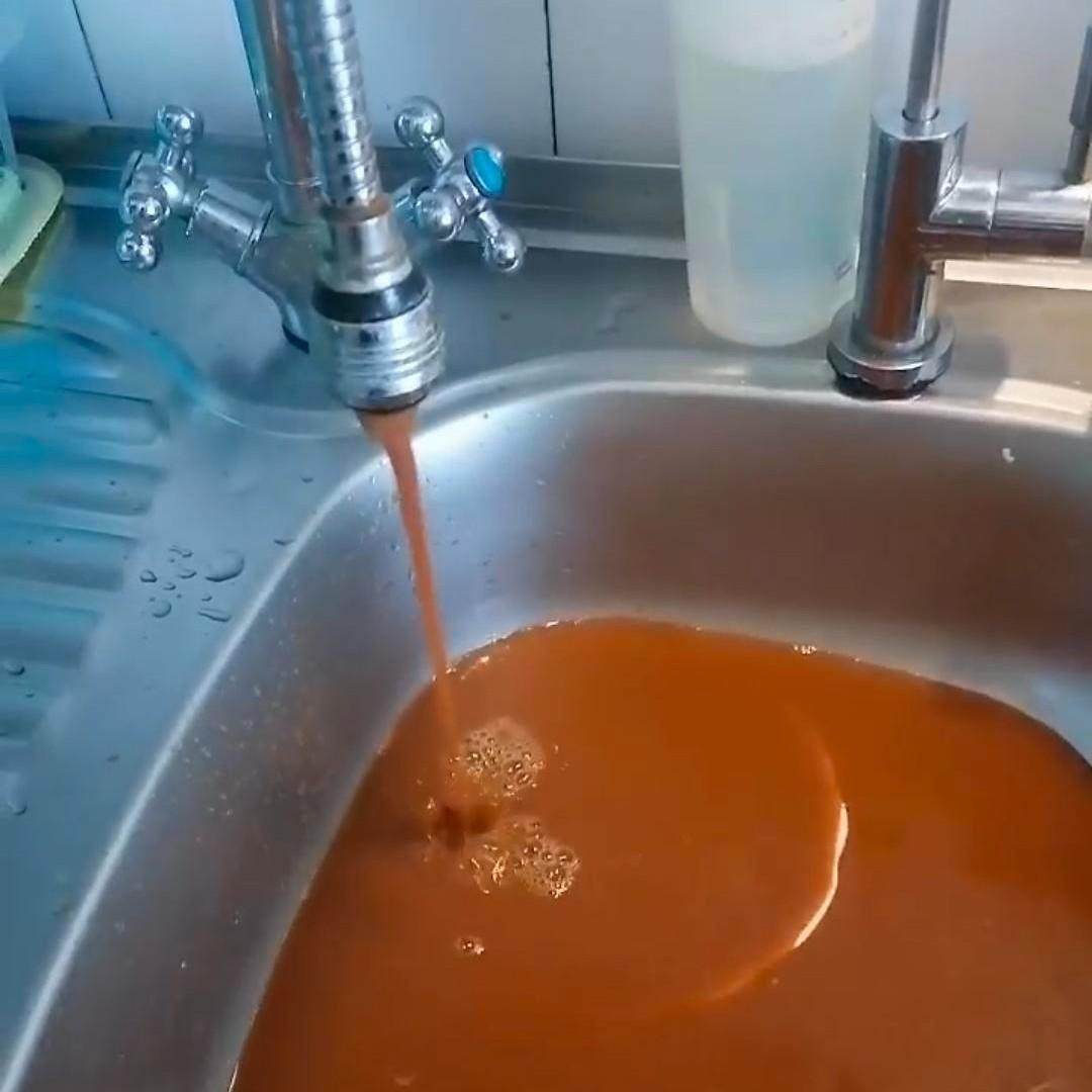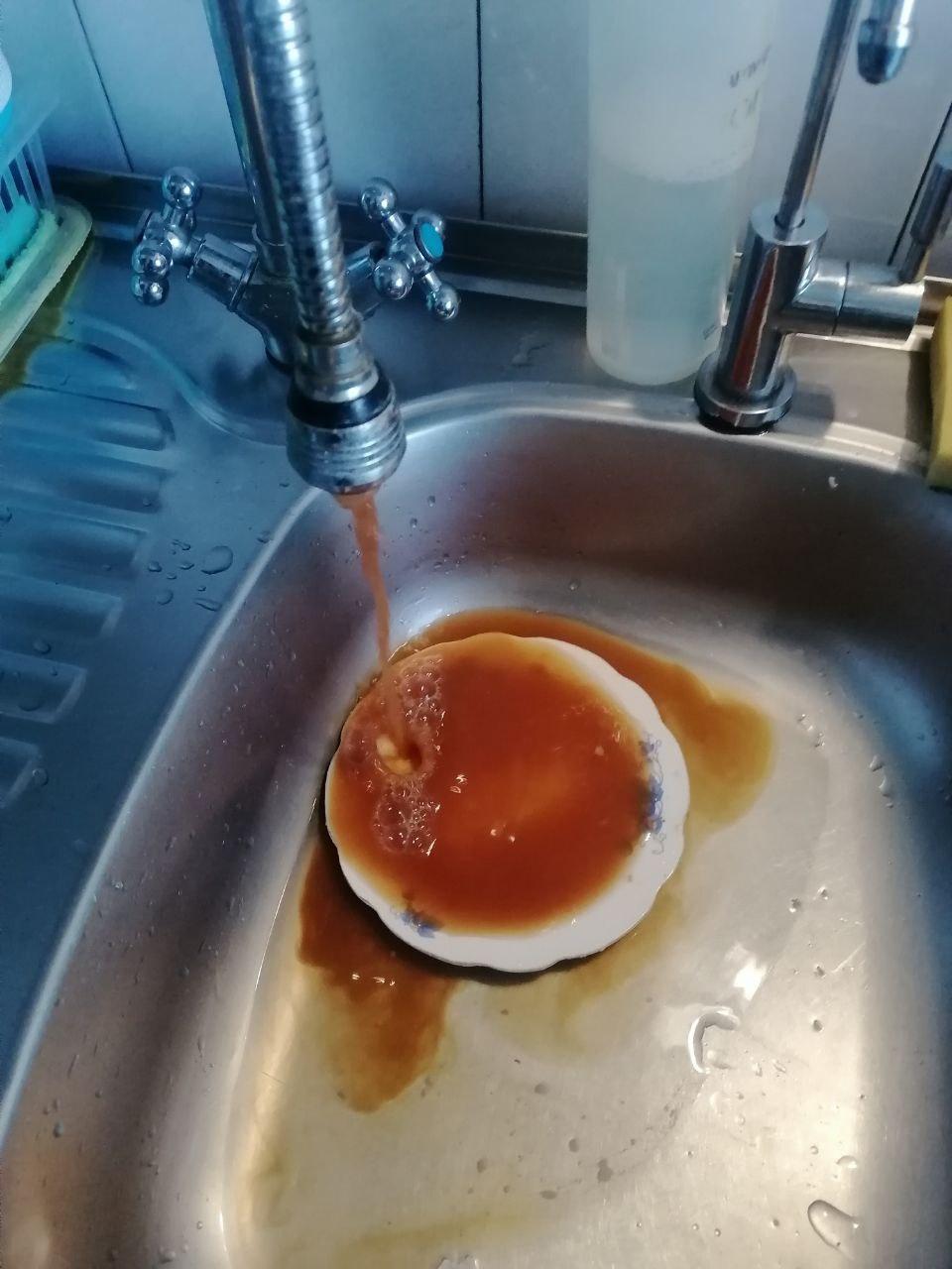 Вода темно-коричневого цвета, текущая из крана в доме жительницы Талинки.