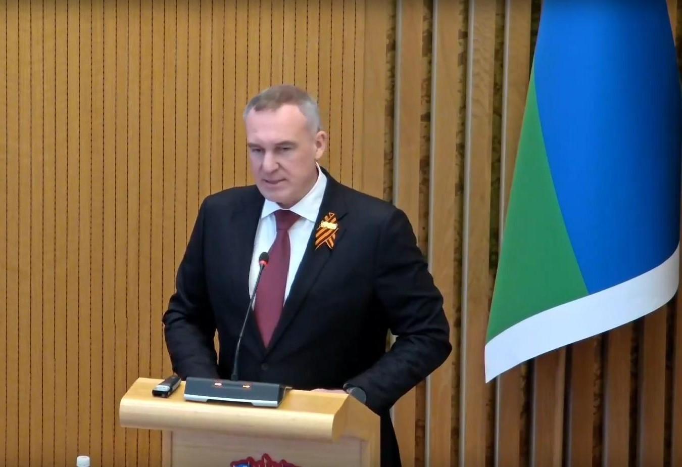Губернатор Югры Руслан Кухарук выступает с отчетом перед депутатами думы