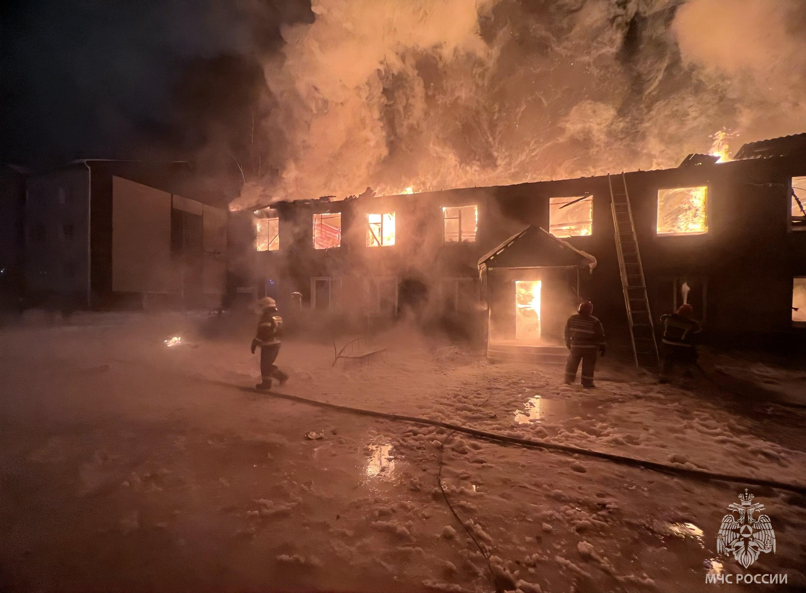 Вечером 7 декабря в поселке Солнечный Сургутского района полностью сгорел двухэтажный многоквартирный дом. Огонь распространился на всю площадь строения, что привело к обрушению кровли.