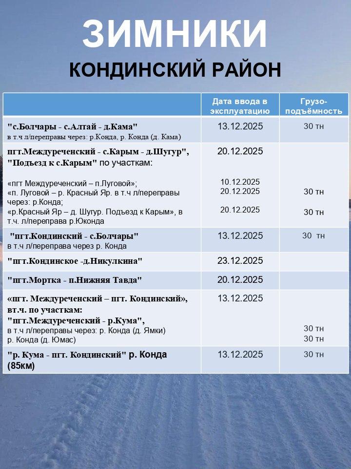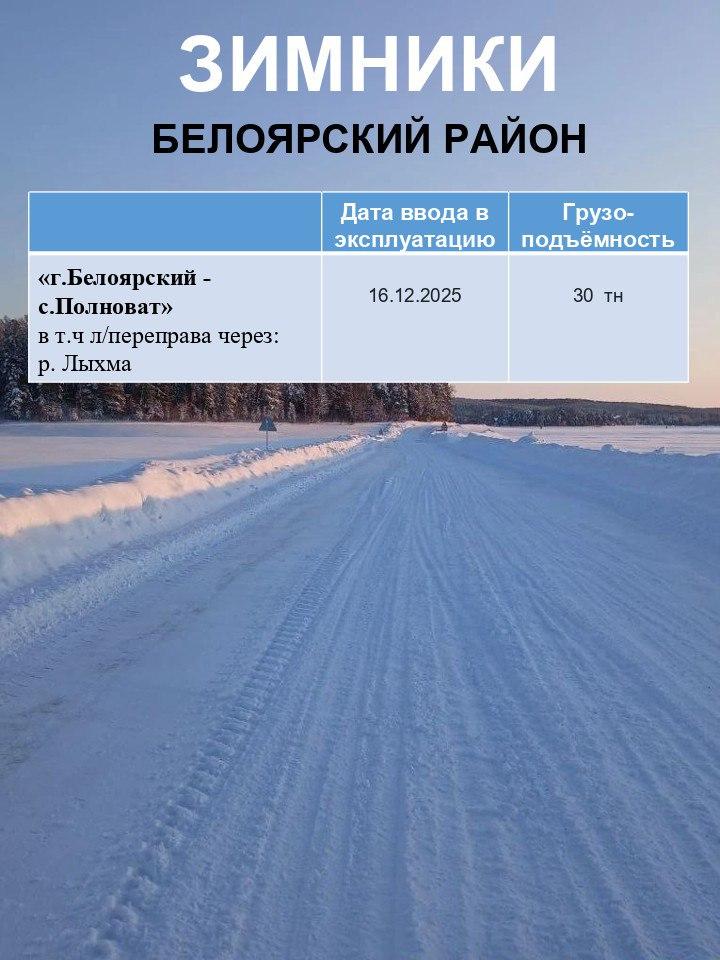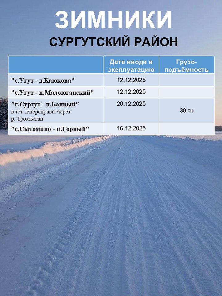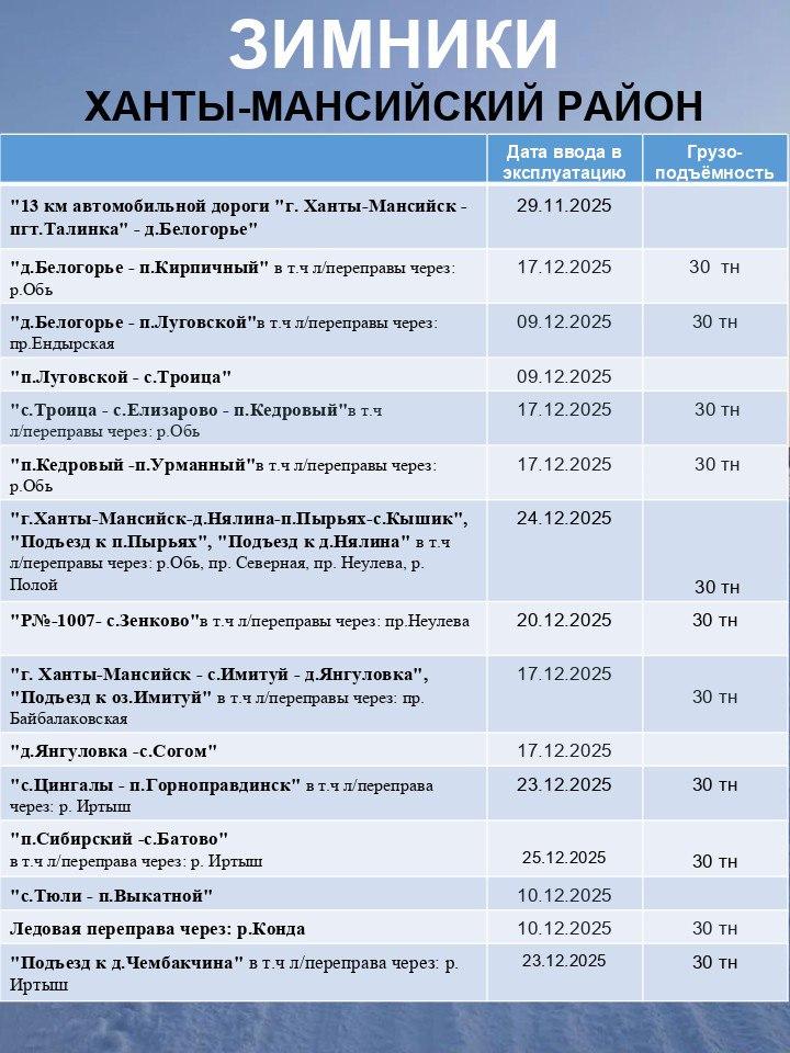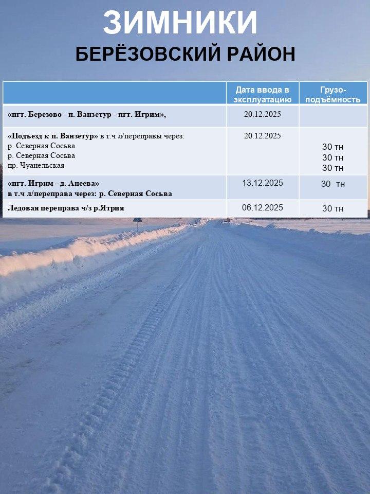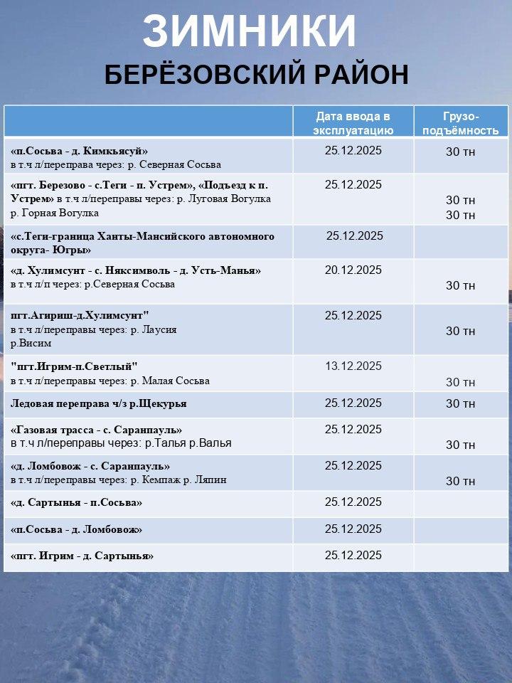 Исключение составляют лишь две зимние дороги в Октябрьском районе, где грузоподъемность остается ниже 30 тонн.
